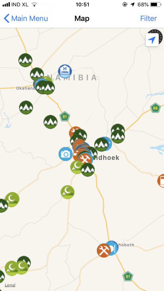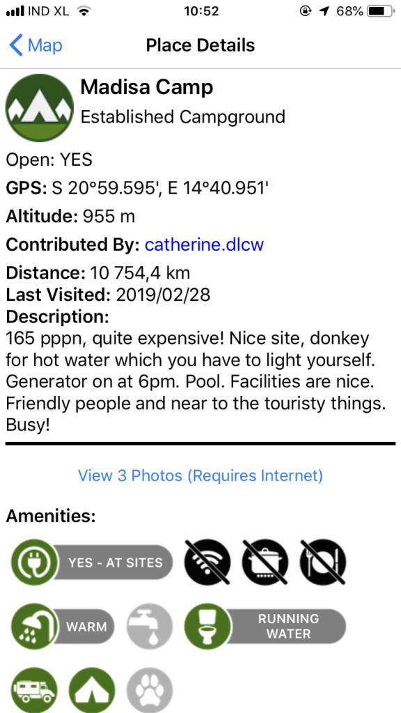 Tracks4Africa also lists restaurants, accommodation, and fuel stations but we found iOverlander to be more user-friendly in this regard.