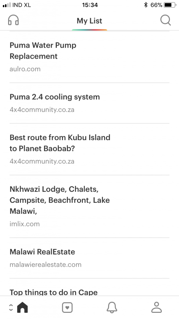 Pocket previously known as Read it Later, is a reading app that allows you to save webpages to read later when you are offline. Whenever we had access to the internet, we would save the webpages and then when we wanted to read it again at places and times with no connection, whether in the middle of the Moremi or Namib Desert we could, thanks to Pocket.